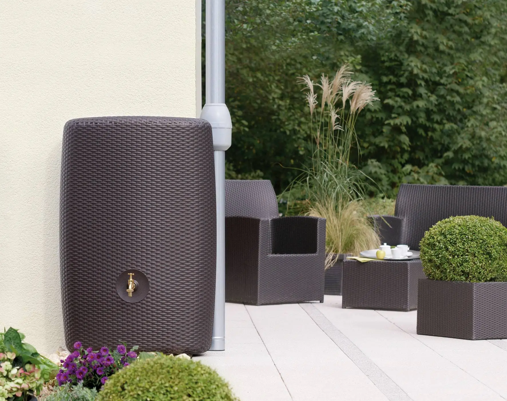 This 300L Sunda Rattan Wall Tank will improve the landscape of your garden with its appealing aesthetic and wicker effect finish. This decorative rainwater collector is UV-stable, weather resistant and comes complete with a brass tap and inlet seal*.