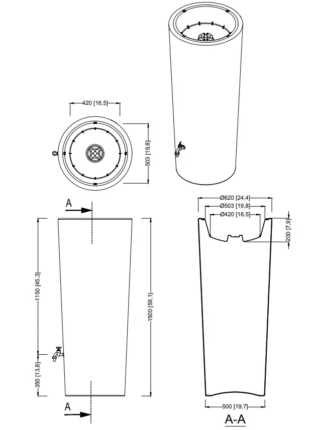 As well as being UV-stable and weather resistant, this water tank includes two high-quality brass threads. Downpipe is not included, but can be bought as an optional extra.