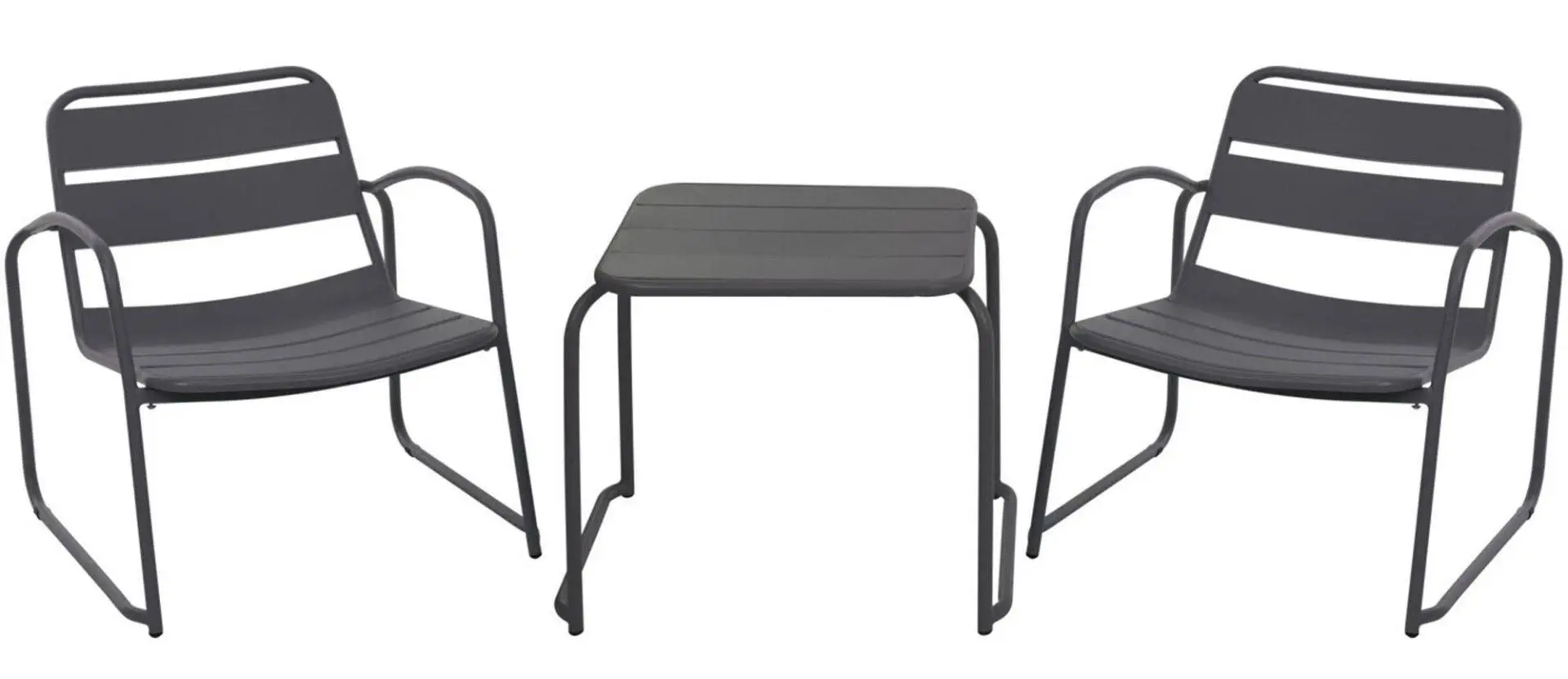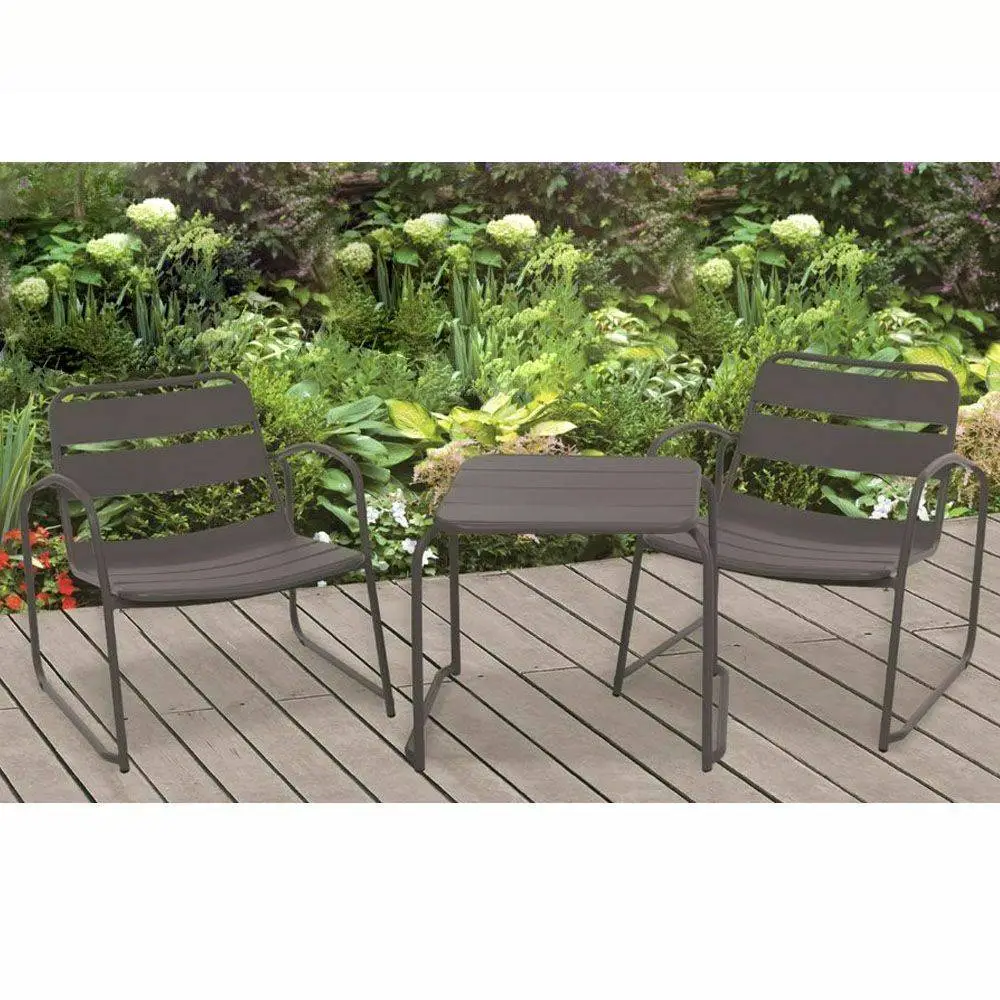 - Set includes two chairs & one table, perfect for any outdoor occasion.