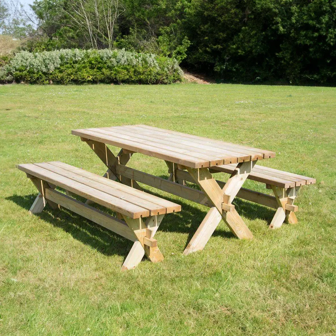 This exquisite picnic set offers unbeatable value for money, comprising two benches and a table crafted from sustainable Swedish Redwood. The set has been treated with tanalised, eliminating the need for further maintenance and allowing it to remain outdoors all year round without any risk of breakage or brittleness. Our sustainable, stylish set boasts a smooth finish and is delivered unassembled. Over time, exposure to the elements will give the set a charming silvery/grey patina. However, those who prefer to retain its new and fresh look can opt to apply our Protection Oil. The set is firmly held together with wooden pegs, ensuring stability and durability. Compact, easy to maintain, and seating six, this is an ideal choice for any outdoor dining area.