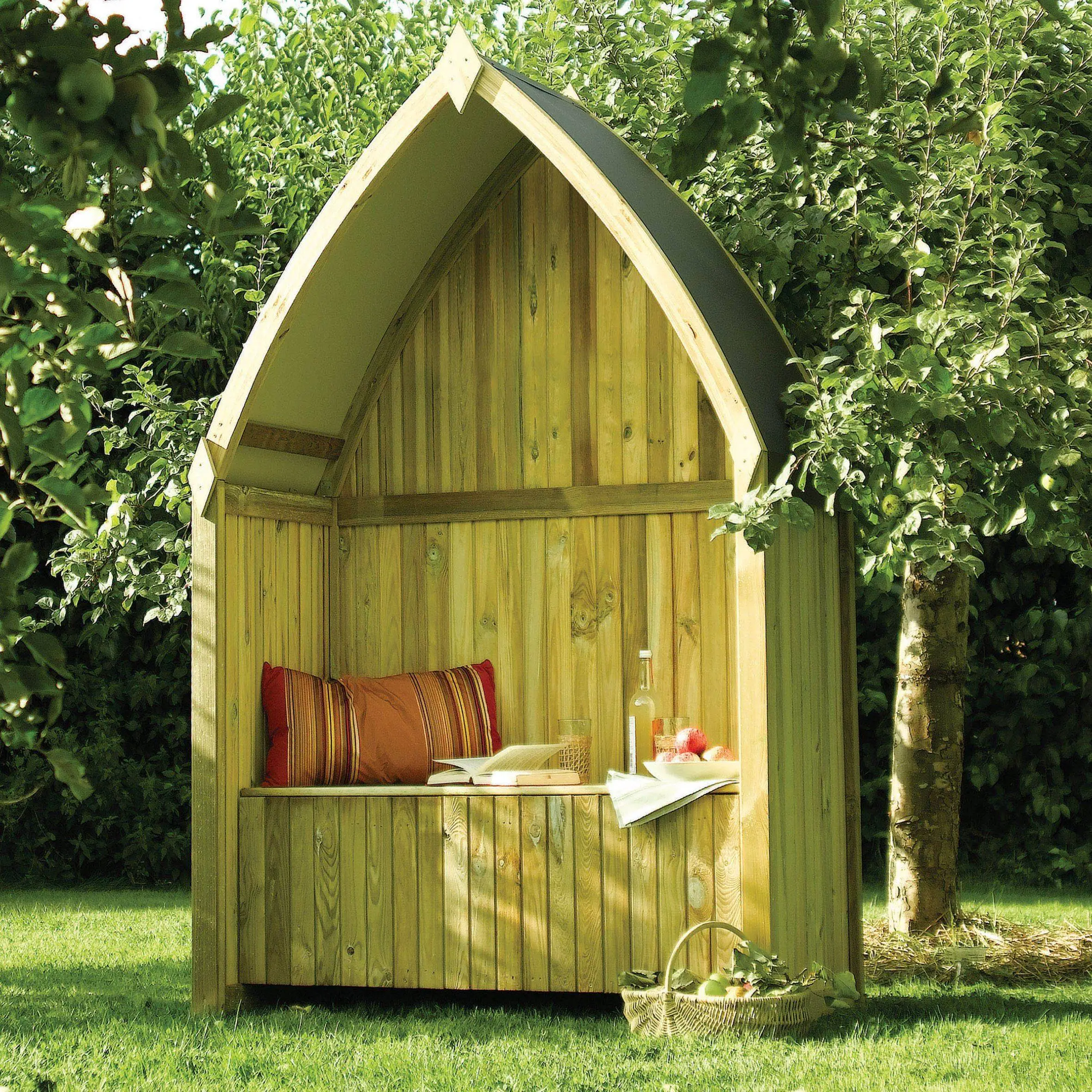 Please note the arbour pictured has been painted for photographic purposes only.