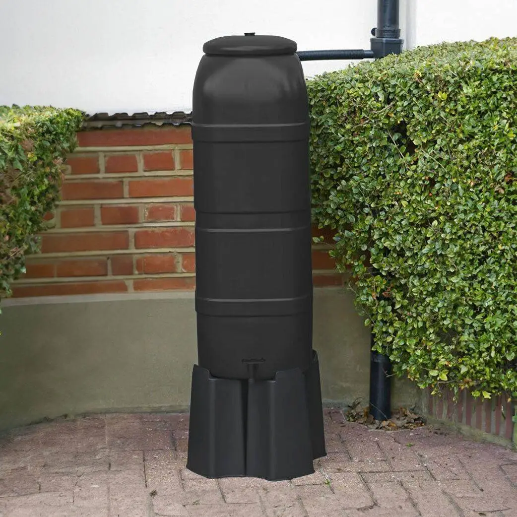 The 100L Black Slimline Space Saver Water Butt Kit complete with Stand and Diverter is an ideal choice for those looking to recycle rainwater whilst helping to save money on their waterbills.